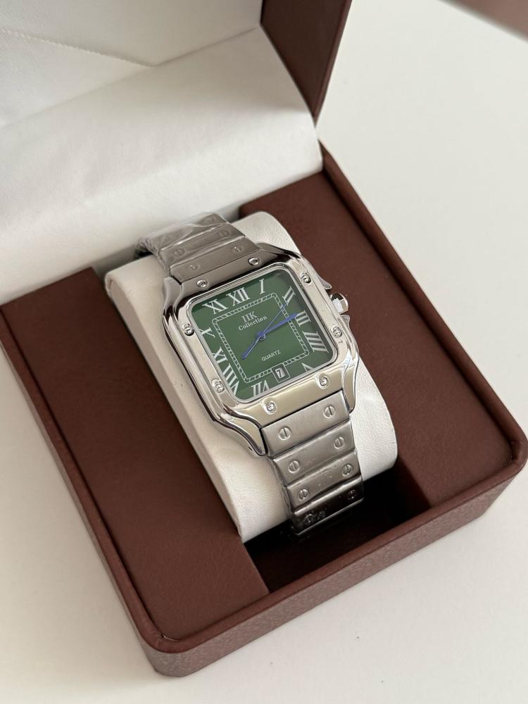 ساعة رجالي فضي - ميناء اخضر ارقام لاتينية