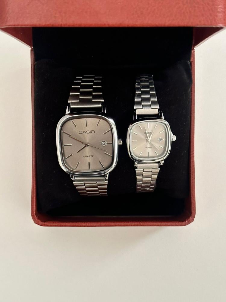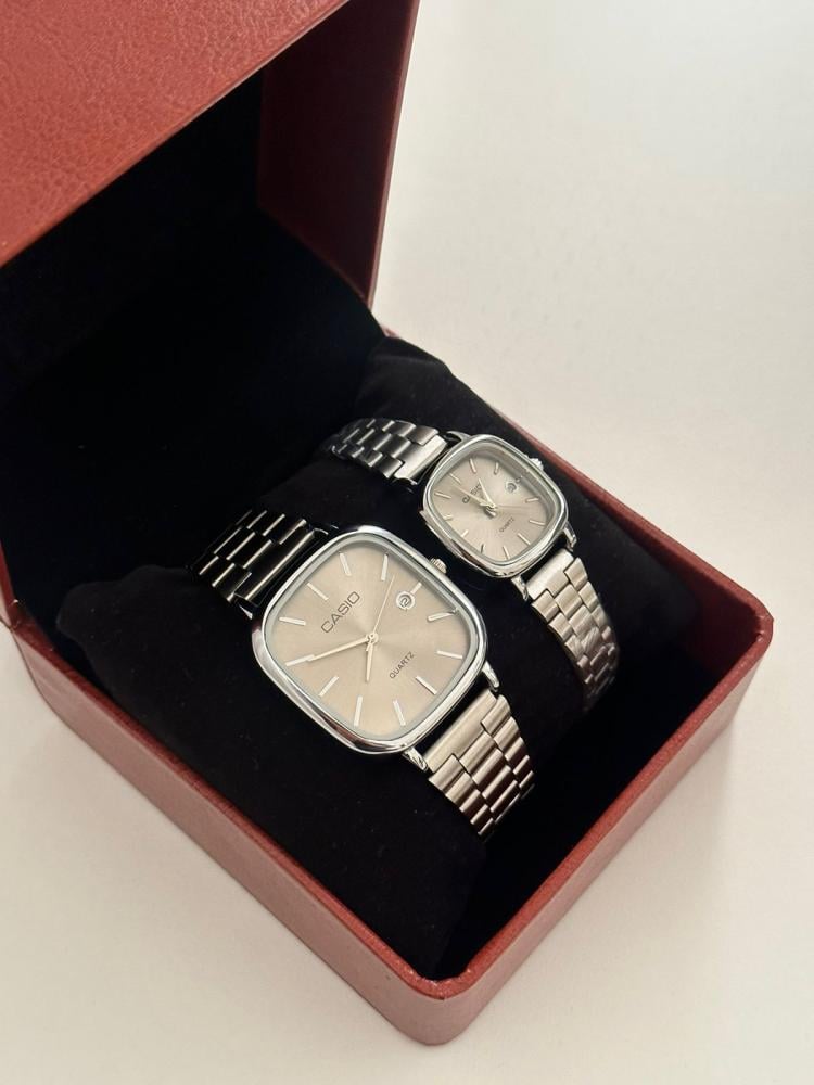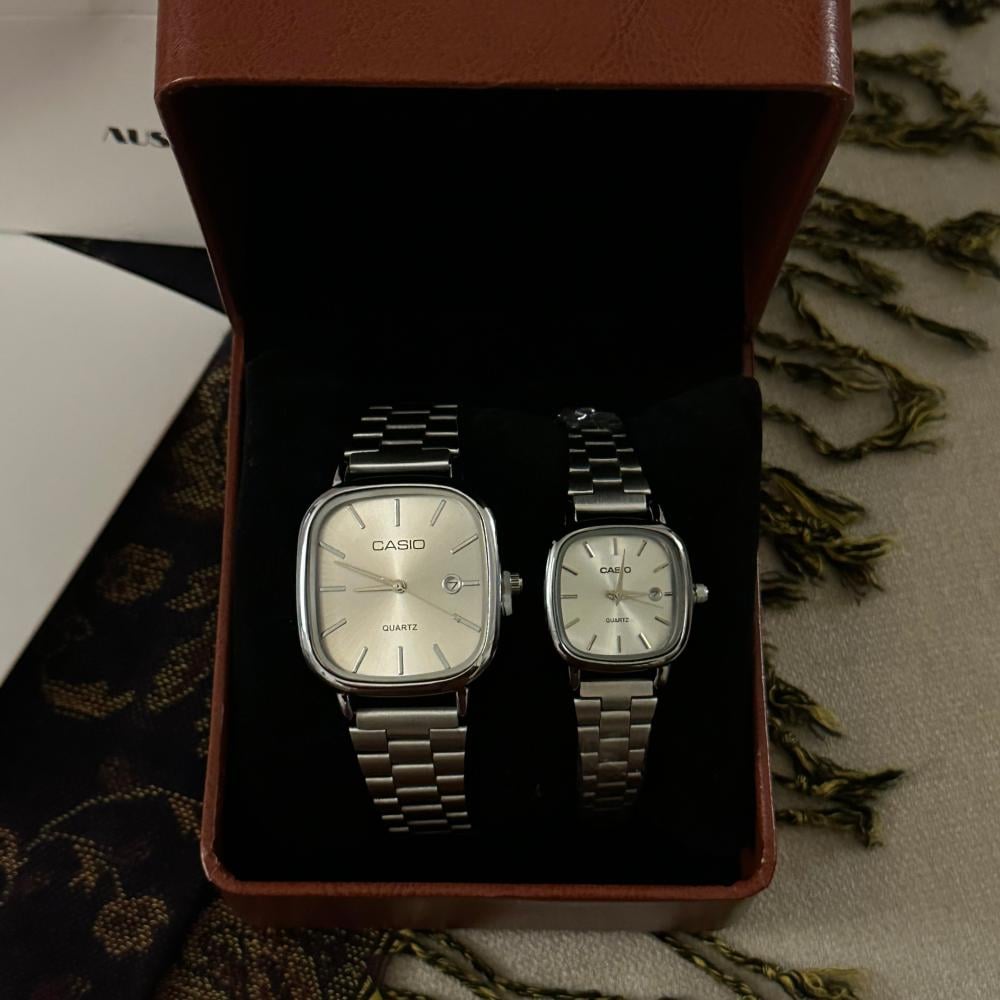 ساعة نسائي ورجالي كاسيو فضي - ميناء ابيض