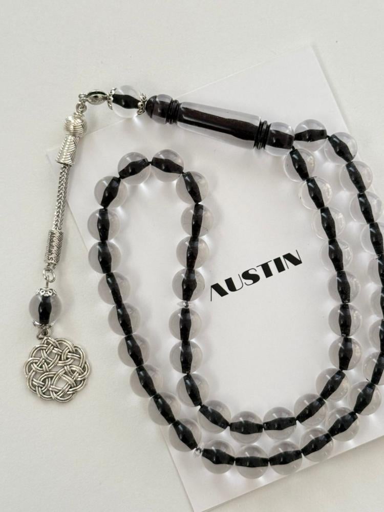 مسبحة باللون الشفاف خيط اسود - بكلايت
